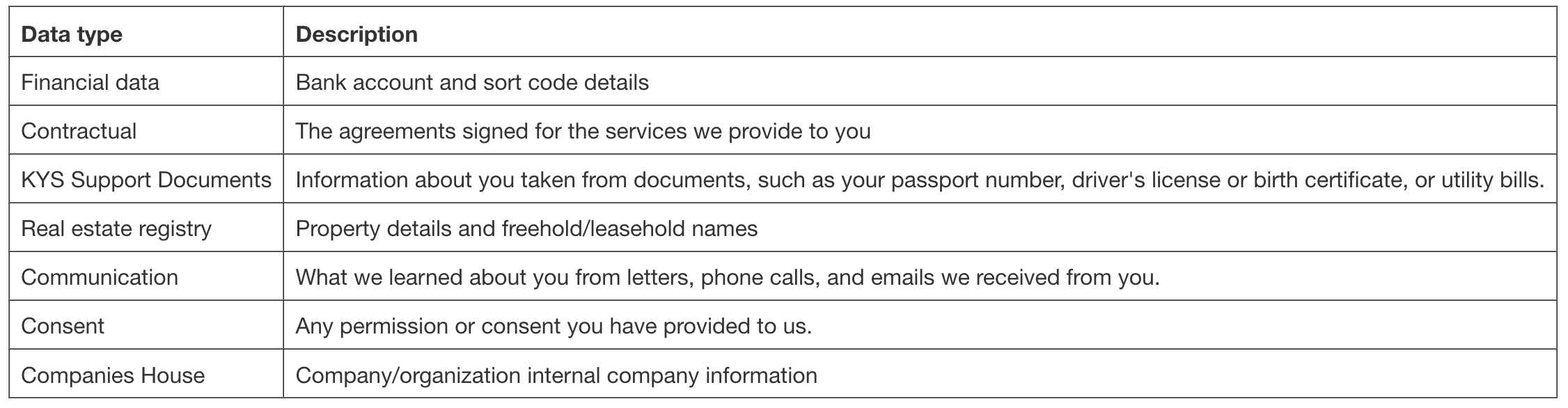 - Professional advisors who act as joint processors or controllers, including lawyers, bankers, fraud and other crime prevention agencies, auditors and insurers.